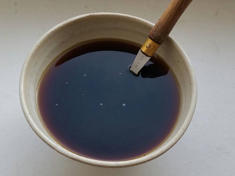 Maak villen in de schil en snij hem in kleine reepjes. Laat drogen tot ze hard zijn.